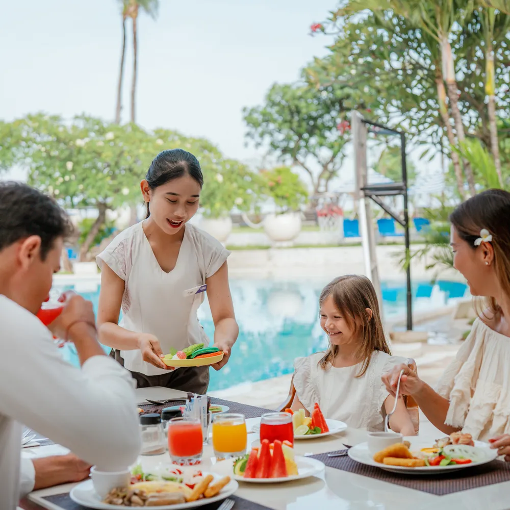 Indulge your last day in Bali before flying back home with a perfect day pass to our beachfront resort, just 5 minutes from the airport. Pampering spa treatment at Tea Tree Spa,  chilling out at the swimming pool, and savoring the taste buds at our Sunset Envy Restaurant